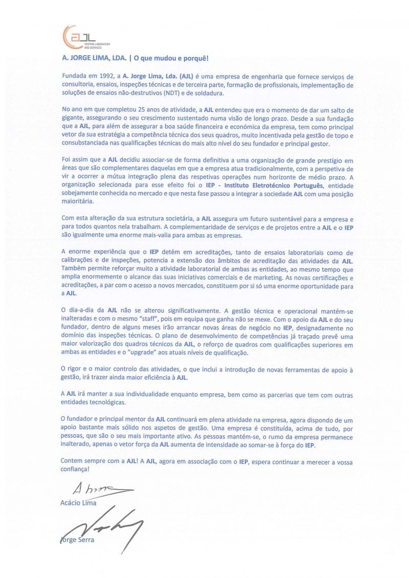 Obrigado a todos os que contribuíram e contribuem para o sucesso da AJL!